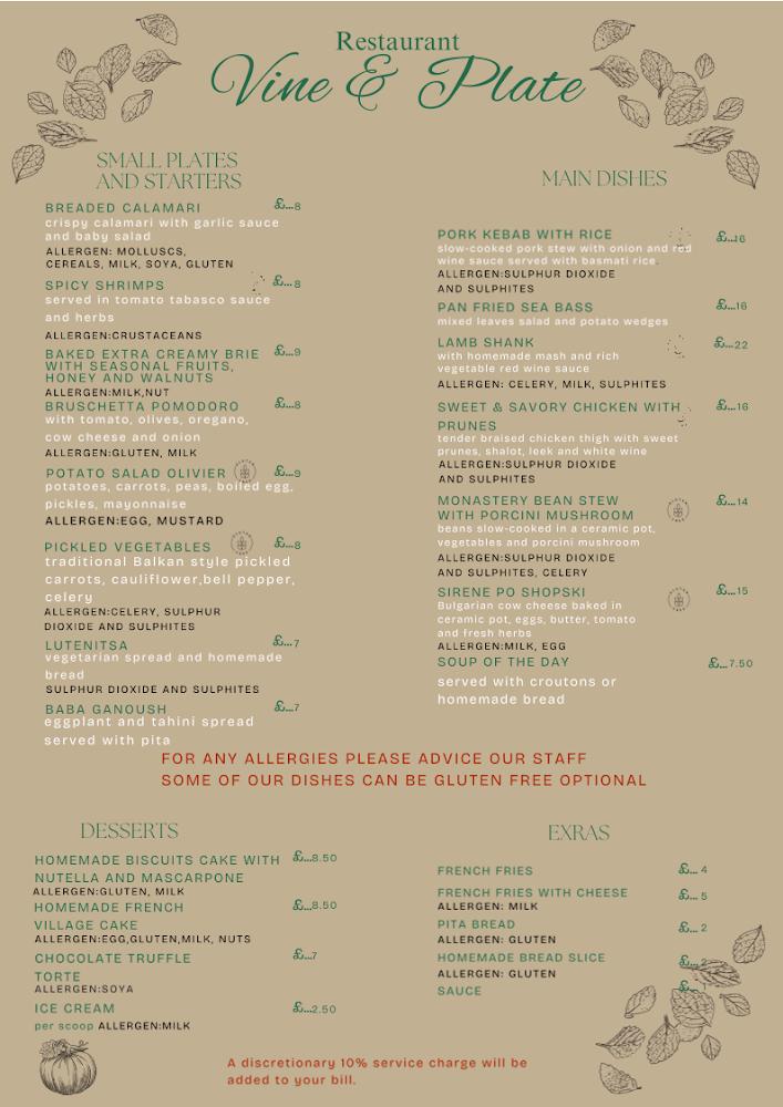 Box, a charming village in Corsham, is home to Restaurant Vine & Plate, a beacon for those seeking comforting, authentic food. With its opening just under a month ago, Vine & Plate has quickly established itself as a welcoming spot where both locals and visitors find rich Bulgarian flavors and a friendly atmosphere. The restaurant stands out not only for its delicious offerings but for its dedication to creating a community space akin to dining at a friend's home. The inviting decor, punctuated by family-style seating and warm tones, adds to the cozy vibe, drawing you in with its promise of hearty meals and genuine hospitality. With free street and nearby lot parking available, getting there is easy and convenient. The restaurant is open every day of the week, inviting diners to enjoy lunch, dinner, or a laid-back coffee catch-up at any time. A local favorite is emerging in this hidden treasure, and patrons leave with plans to return soon, assigning it a special place in their dining rotation.